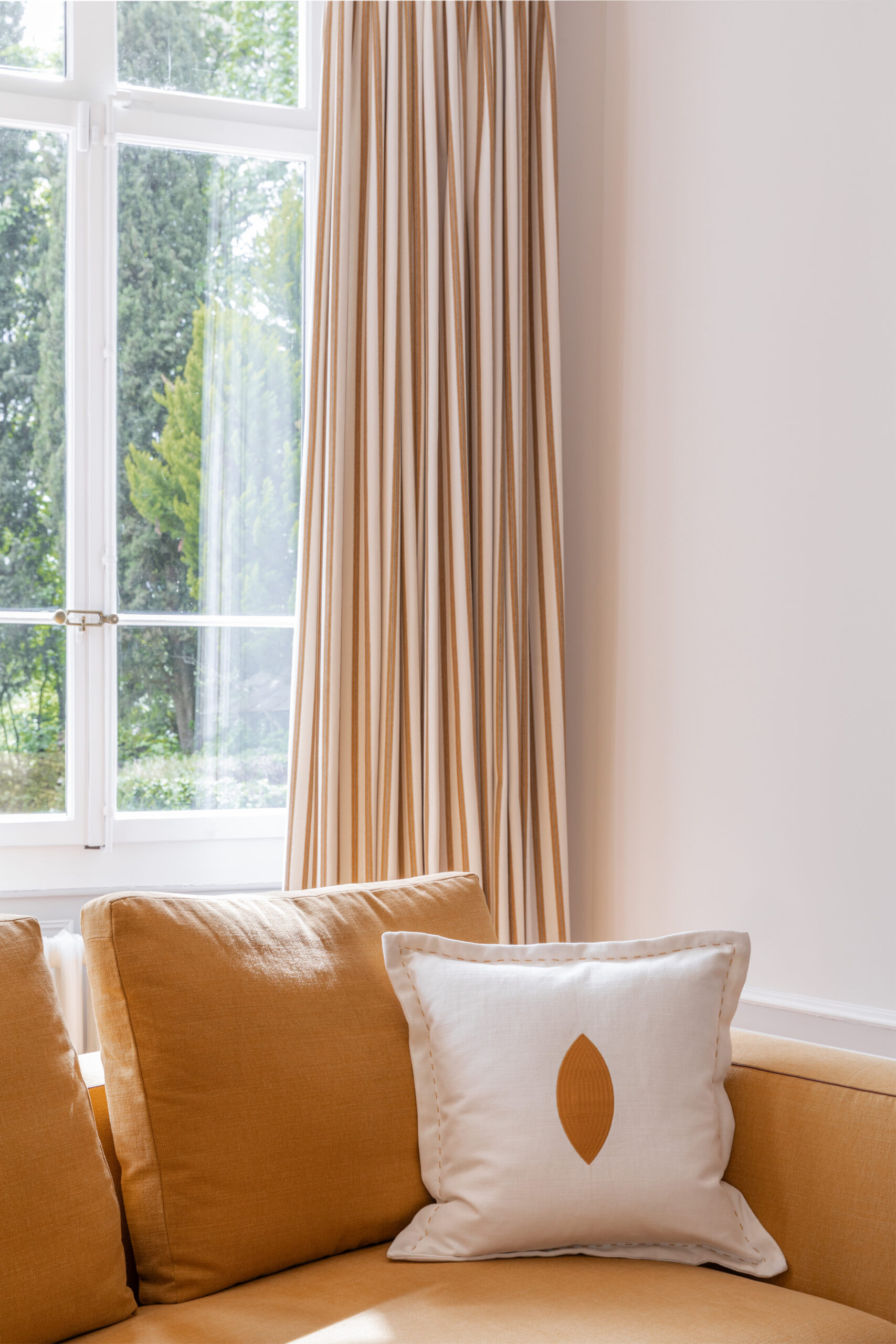 This detail connects the space to the creative gesture and weaves the decoration into a seamless continuity between nature and architecture.